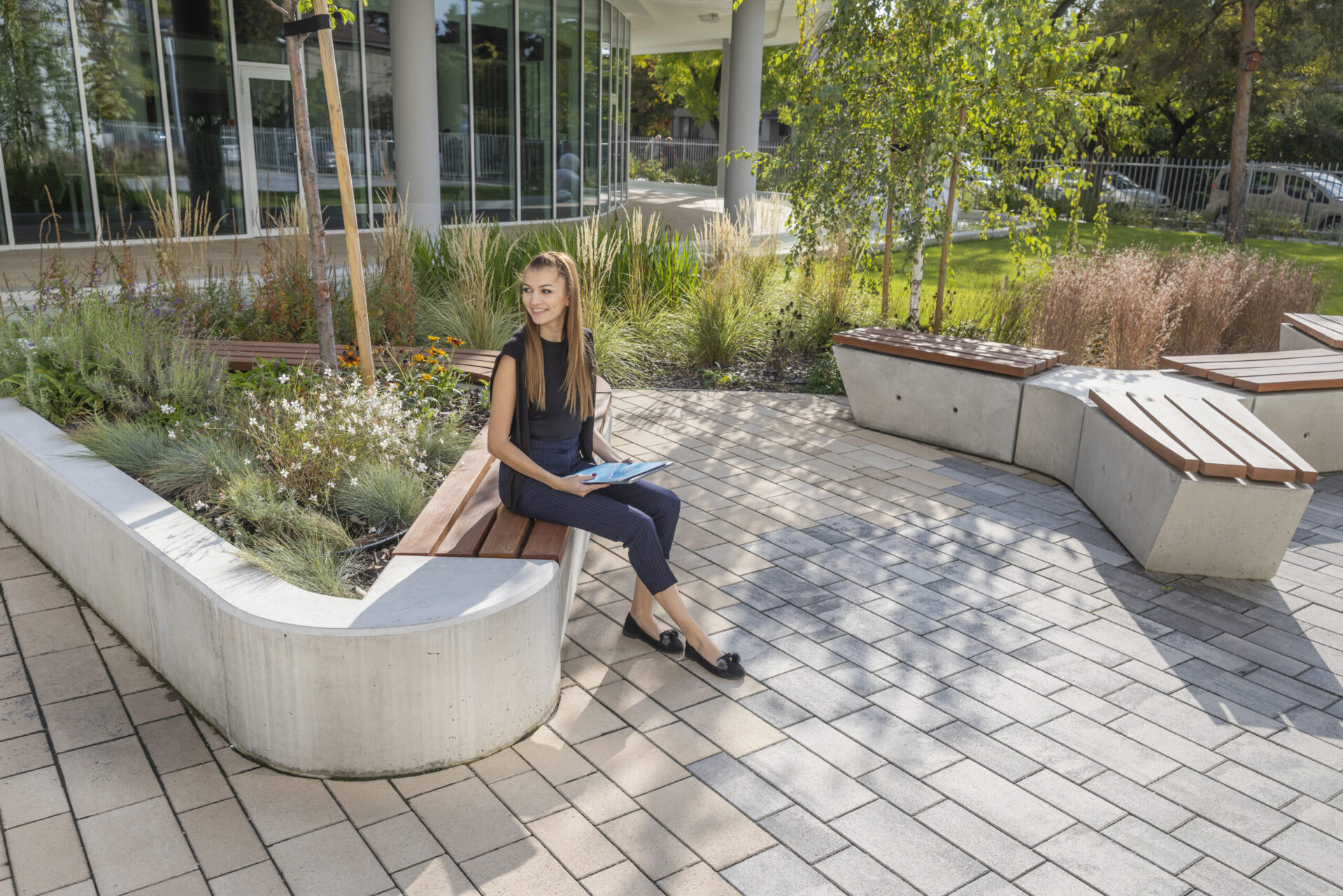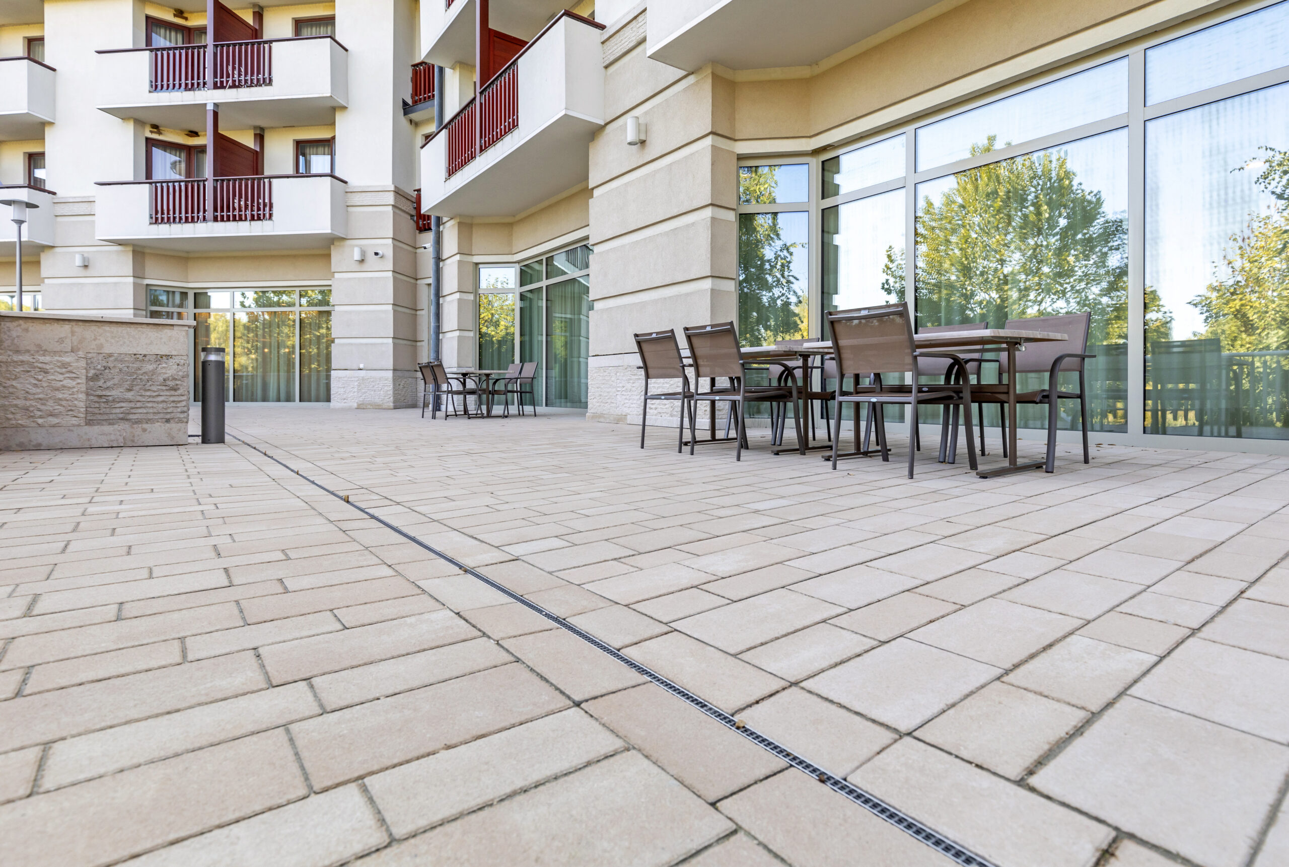 A magas esztétikai igényeket kielégítő burkolat tagolást kontrasztszínű elemkínálatunk biztosítja. Kapcsolódási rendszere gyalogos, személyautós és alkalmankénti tehergépjárműves terhelésre is alkalmassá teszi.